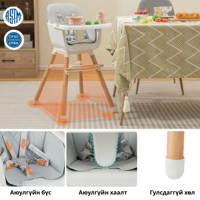 Модон хоолны ширээ, 6+ сар - Grey