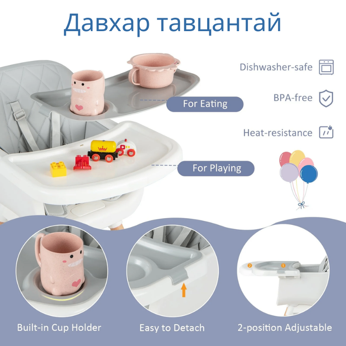0-36 сар хүртэл хэрэглэх, 2 өндөрт тохируулан 6-н зориулалтаар ашиглах боломжтой